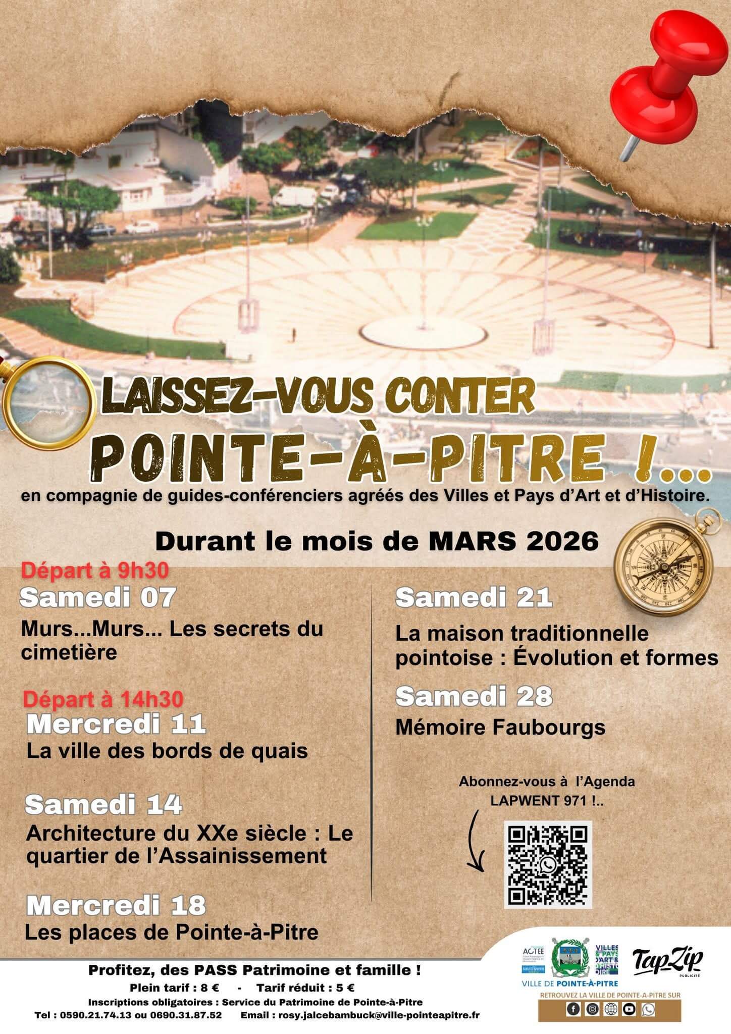 Laissez-vous conter Pointe à Pitre : Programme des vistes Mars 2026