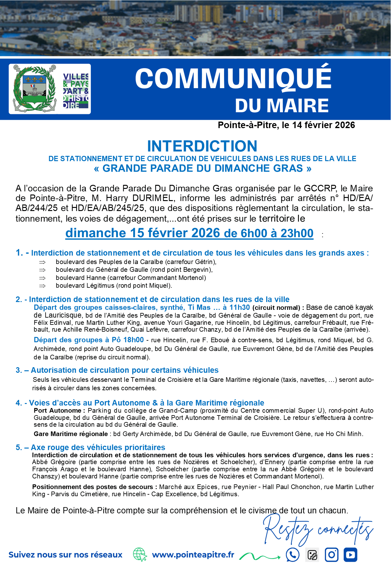 Parade du Dimanche gras 2026 - restriction de circulation